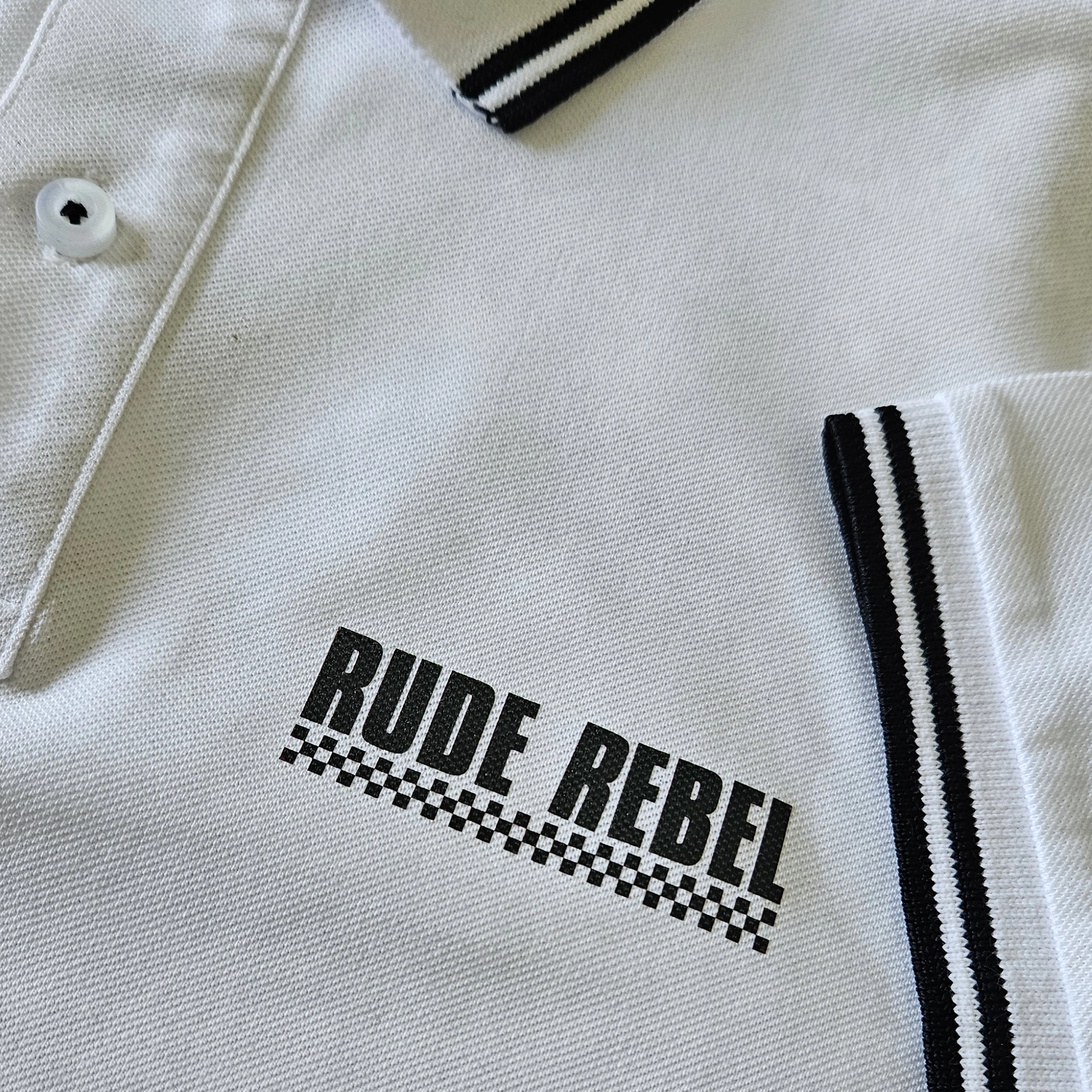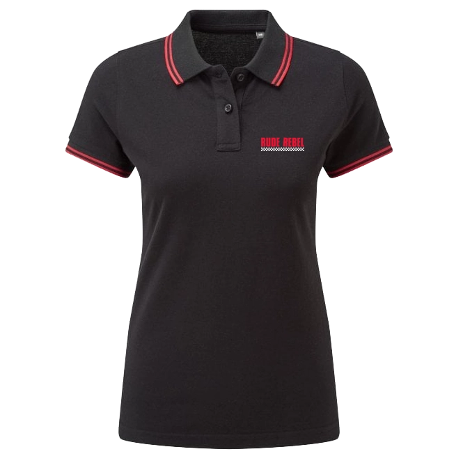 This is our Womens ‘Rude Rebel’ Polo Shirt with a printed logo.